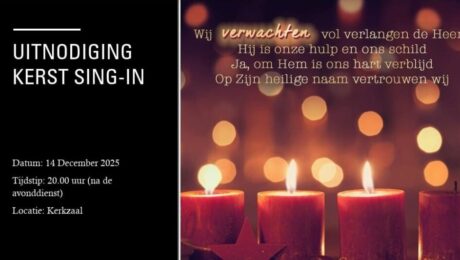Graag nodigen we u en jullie uit voor de kerst sing-in op D.V. zondag 14 december.